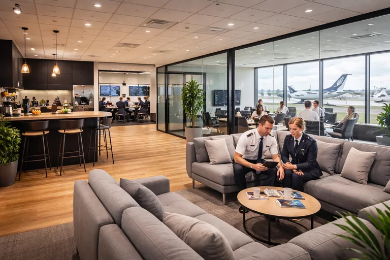 An unserer Home Base in Nürnberg stehen unseren Crews moderne, durchdacht gestaltete Rückzugs- und Arbeitsbereiche zur Verfügung. Die Crew-Räume sind bewusst als ruhige, funktionale Umgebung konzipiert – ein Ort zum Ankommen, Vorbereiten und Abschalten zwischen den Einsätzen.